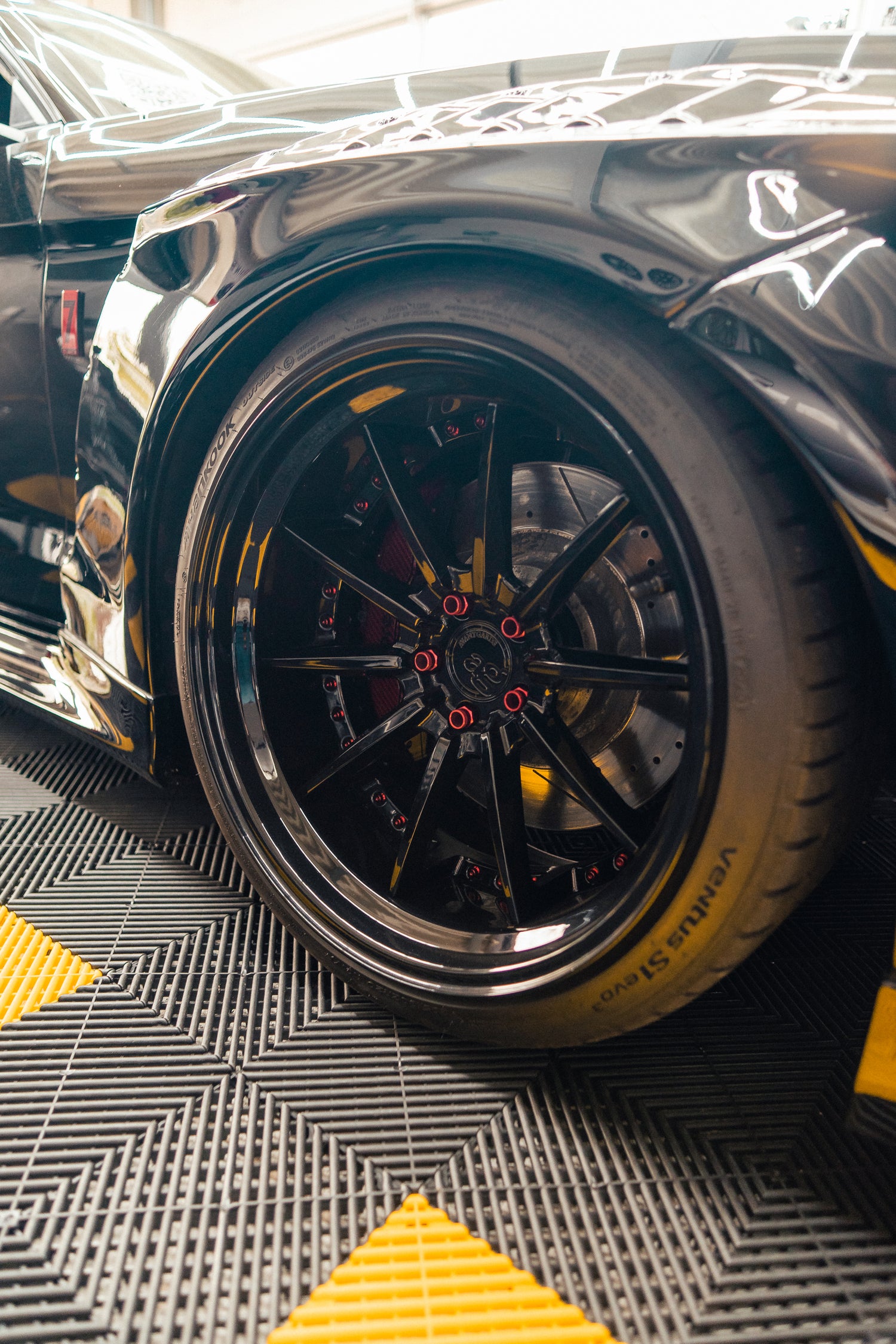 Dieses Widebody Kit verbreitert das BLACK7 Projekt um 12 cm pro Seite auf der Hinterachse, Auf der Vorderachse gab es pro Seite 9 cm dickere Backen. Bestehend aus einem Frontspoiler, Kofferraumspoiler, Seitenschwellern, vorderen und hinteren Kotflügelverbreiterungen macht es diesen Mustang perfekt! Das Kit wurde lediglich verschraubt und mit einer dünnen Dichtmasse abgedichtet. Wir dürfen hier stolz berichten, dass dieser Mustang der erste Shirokai-Mustang in D mit diesem Widebody Kit zugelassen wurde.