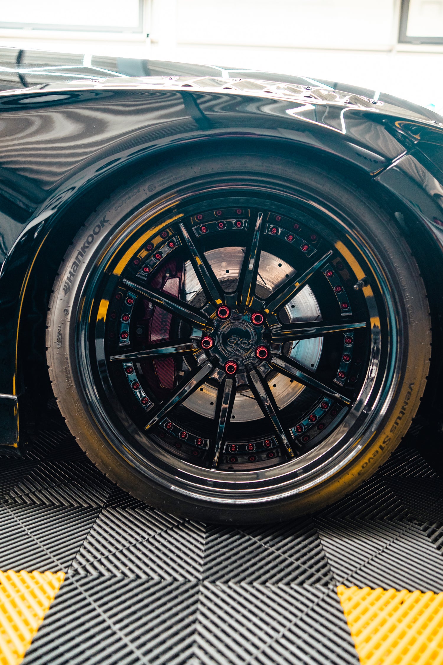 Diese fetten 20 Zöller machen das Bodykit perfekt! Keine Distanzscheiben, keine Kompromisse, sondern perfekt abgestimmte 13,5 und 11,5 x 20 Zöller, die für das Bodykit gebaut wurden. Mit einer geprüften Achsfestigkeit, konnte alles für den deutschen Straßenverkehr abgenommen werden.