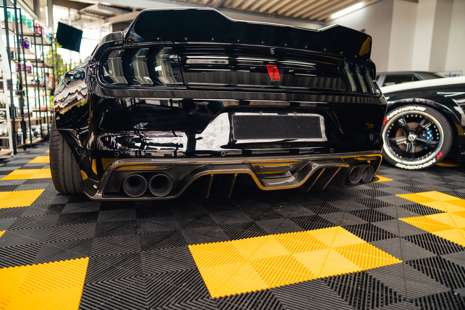 Auch dieser Heckdiffusor ist aus Carbon gefertigt und wurde in einer 4 Rohr Ausführung verbaut. Auch dieser kann über American Horsepower erworben werden.