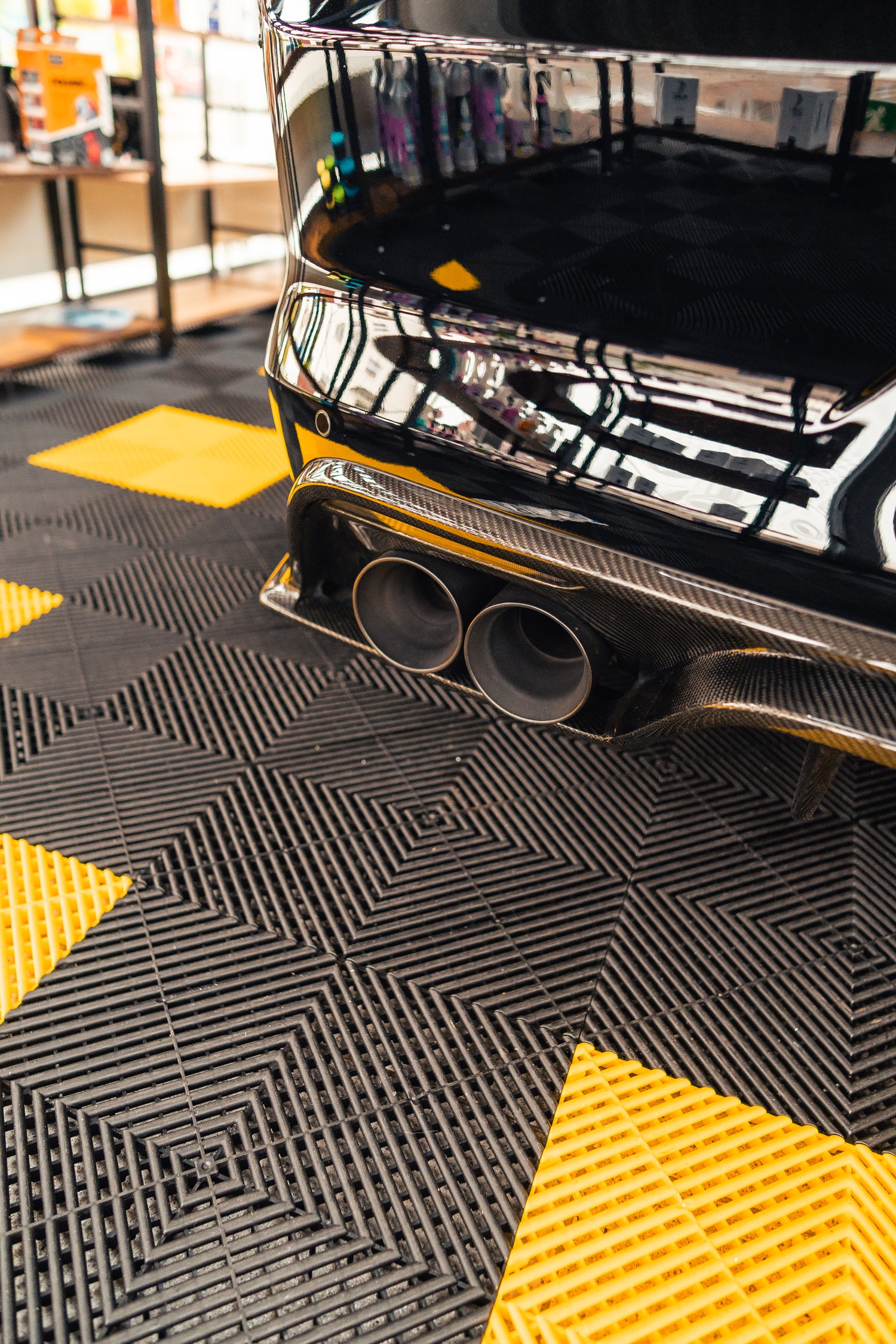 Passend zu dem Heckdiffusor, wurde eine 3,5 Zoll Edelstahl-Abgasanlage von Grail Automotive ab KAT verbaut. Die 114mm und 4 schwarz matten Endrohre füllen die großen Öffnungen des Diffusors.
