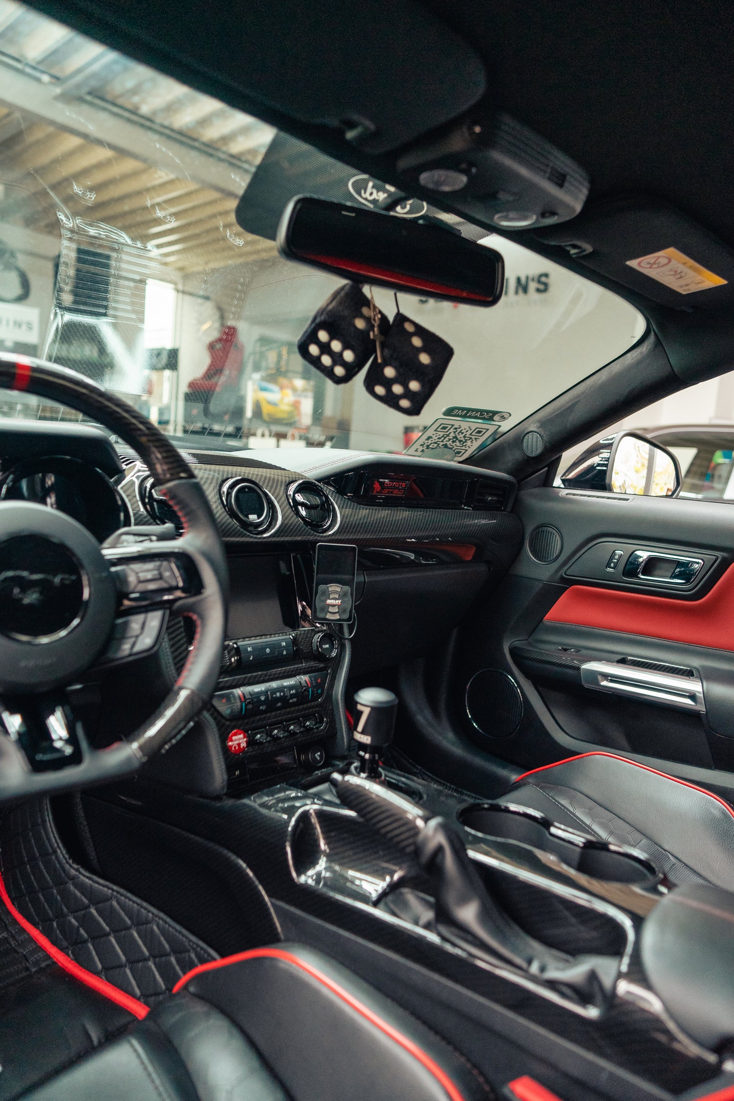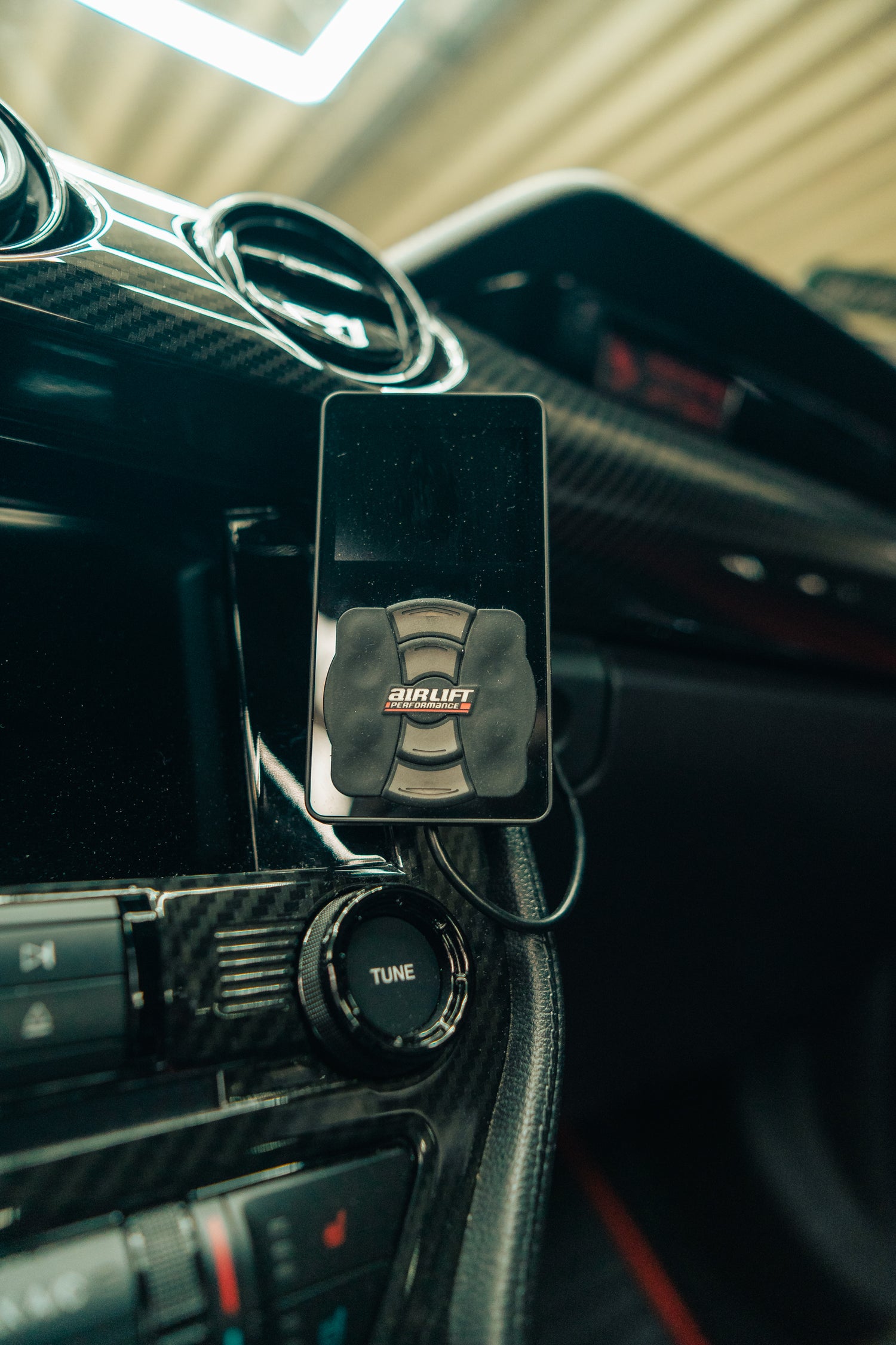 Mit einem Luftfahrwerk lässt sich das Widebody Kit am besten fahren. Im abgelassenen Zustand macht es den Mustang perfekt. Das Airlift Performance Kit mit einer 3H Steuerung und einem Kofferraumausbau, der mit Hardlines versehen wurde, hat die Firma DTWorx verbaut.