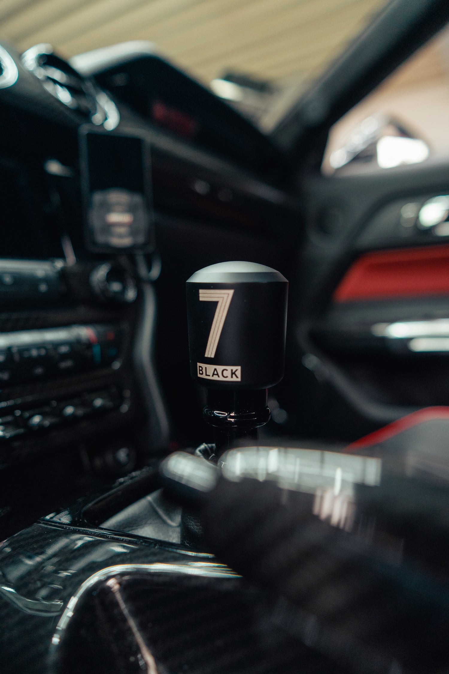 Mit diesem eigen gefertigten Schaltknauf, in den das BLACK7 Logo gelasert wurde, kann jetzt perfekt geschalten werden.
